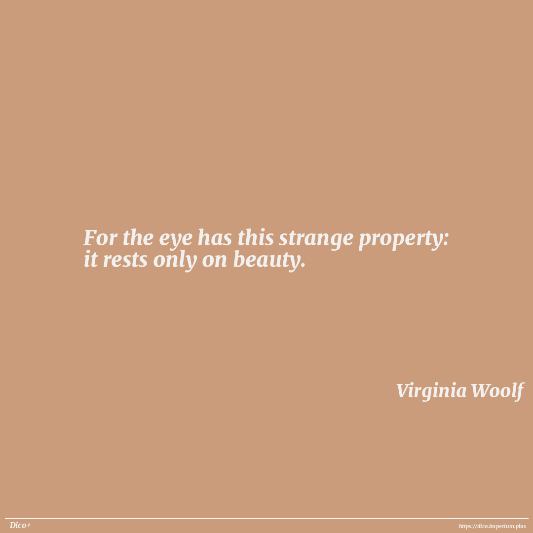 For the eye has this strange property: it rests only on beauty.