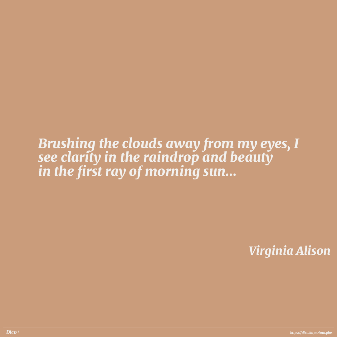 Brushing the clouds away from my eyes, I see clarity in the raindrop and beauty in the first ray of morning sun...