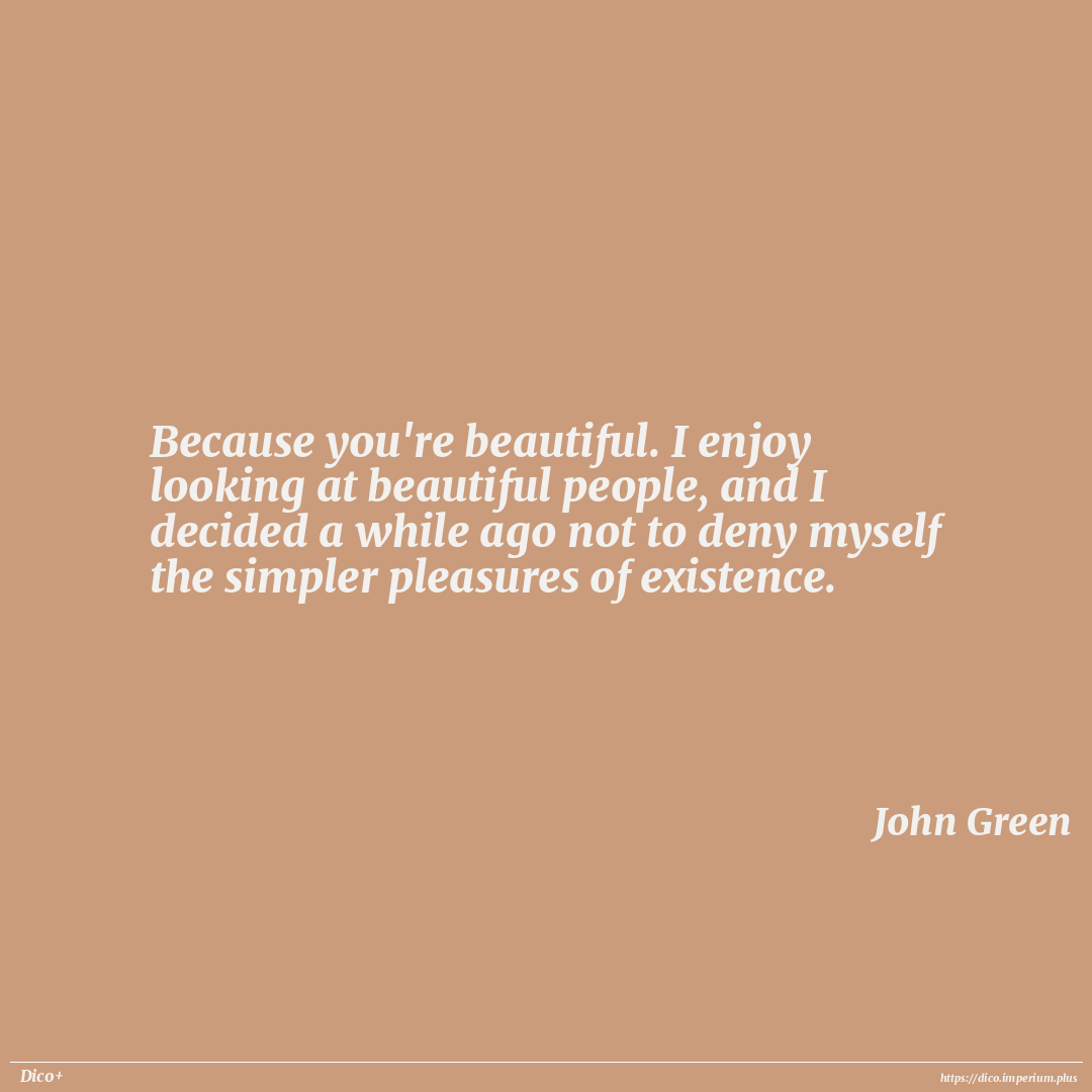 Because you're beautiful. I enjoy looking at beautiful people, and I decided a while ago not to deny myself the simpler pleasures of existence.