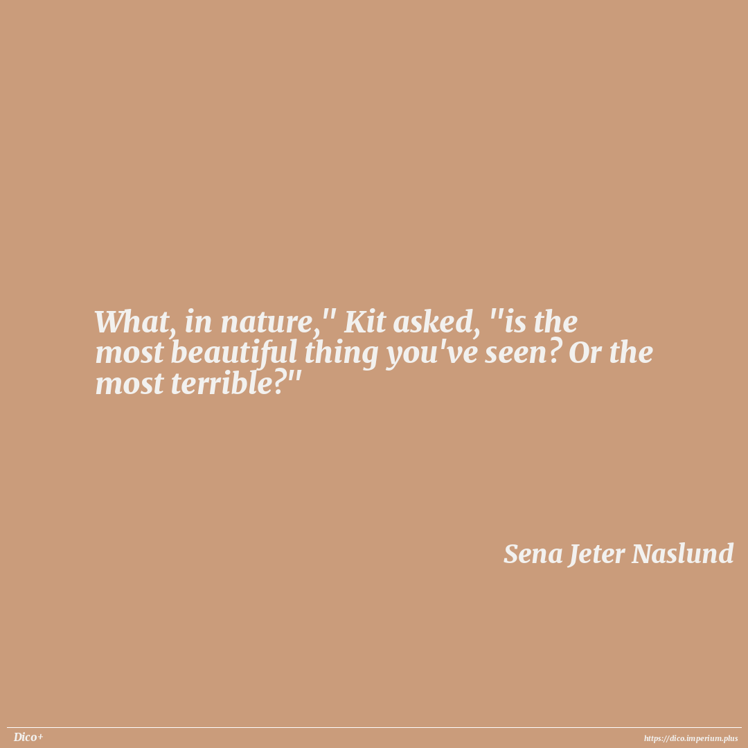 What, in nature," Kit asked, "is the most beautiful thing you've seen? Or the most terrible?"