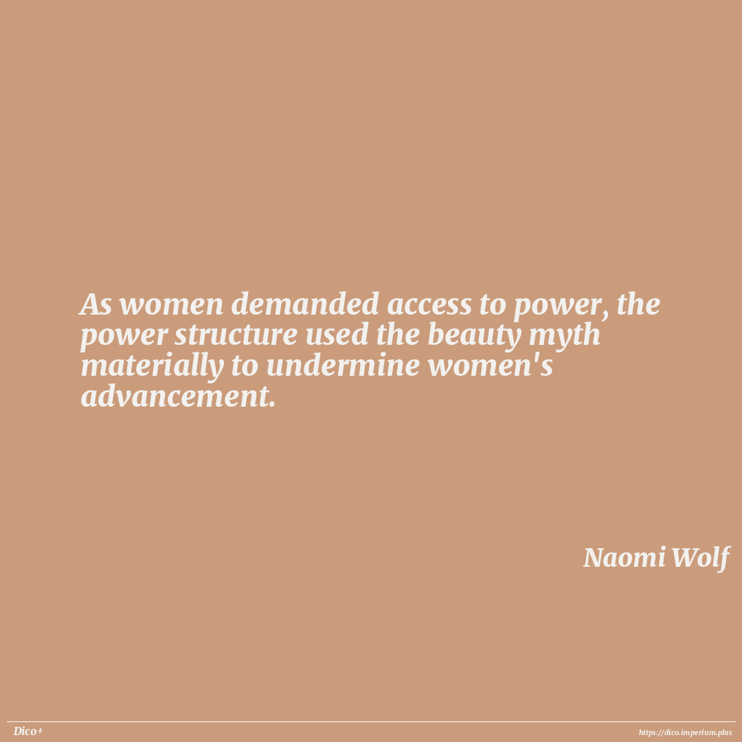 As women demanded access to power, the power structure used the beauty myth materially to undermine women's advancement.