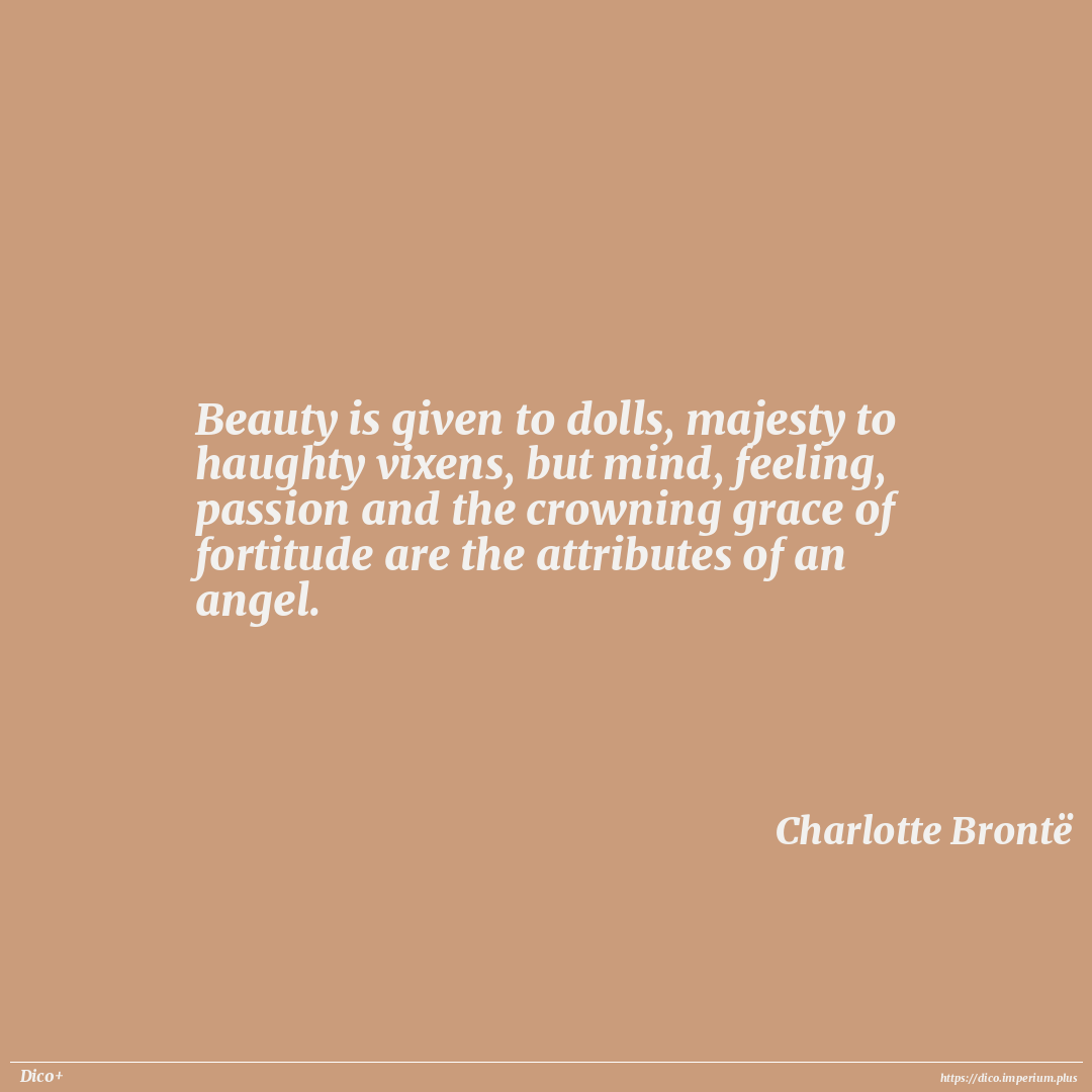 Beauty is given to dolls, majesty to haughty vixens, but mind, feeling, passion and the crowning grace of fortitude are the attributes of an angel.