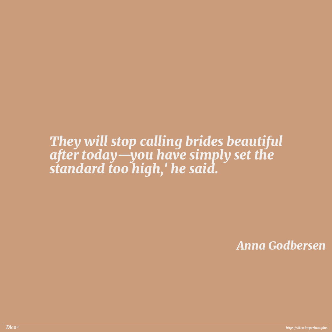 They will stop calling brides beautiful after today—you have simply set the standard too high,' he said.