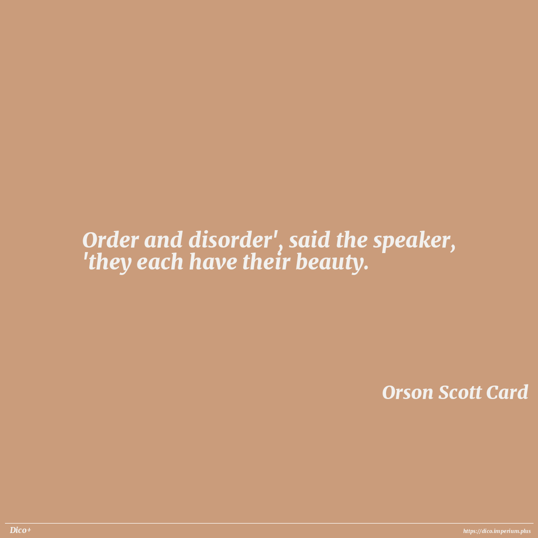 Order and disorder', said the speaker, 'they each have their beauty.