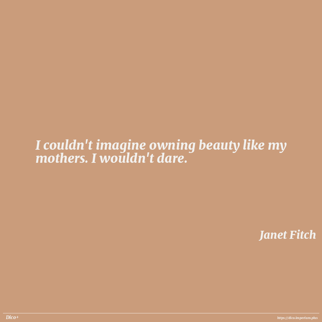 I couldn't imagine owning beauty like my mothers. I wouldn't dare.