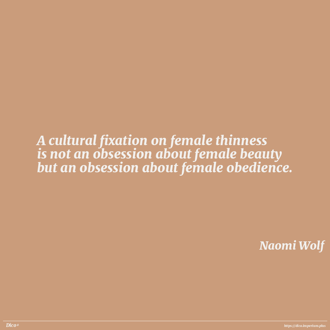 A cultural fixation on female thinness is not an obsession about female beauty but an obsession about female obedience.