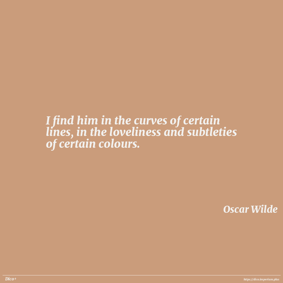 I find him in the curves of certain lines, in the loveliness and subtleties of certain colours.