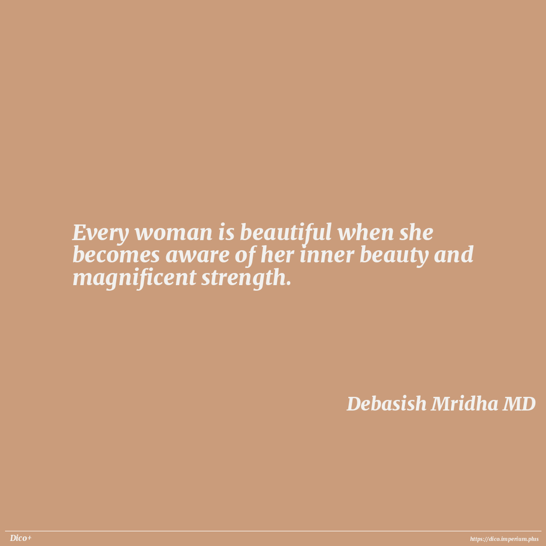 Every woman is beautiful when she becomes aware of her inner beauty and magnificent strength.