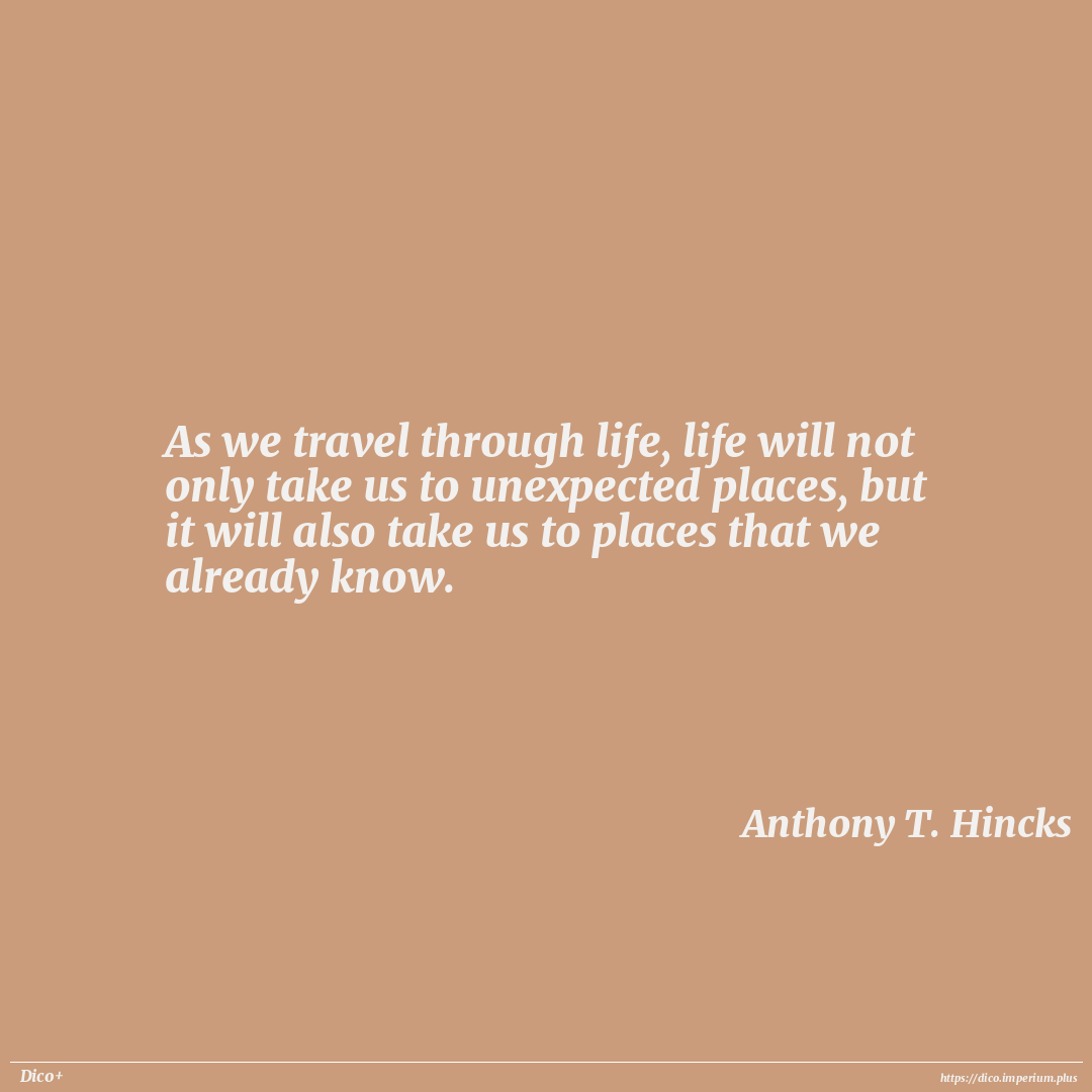 As we travel through life, life will not only take us to unexpected places, but it will also take us to places that we already know.