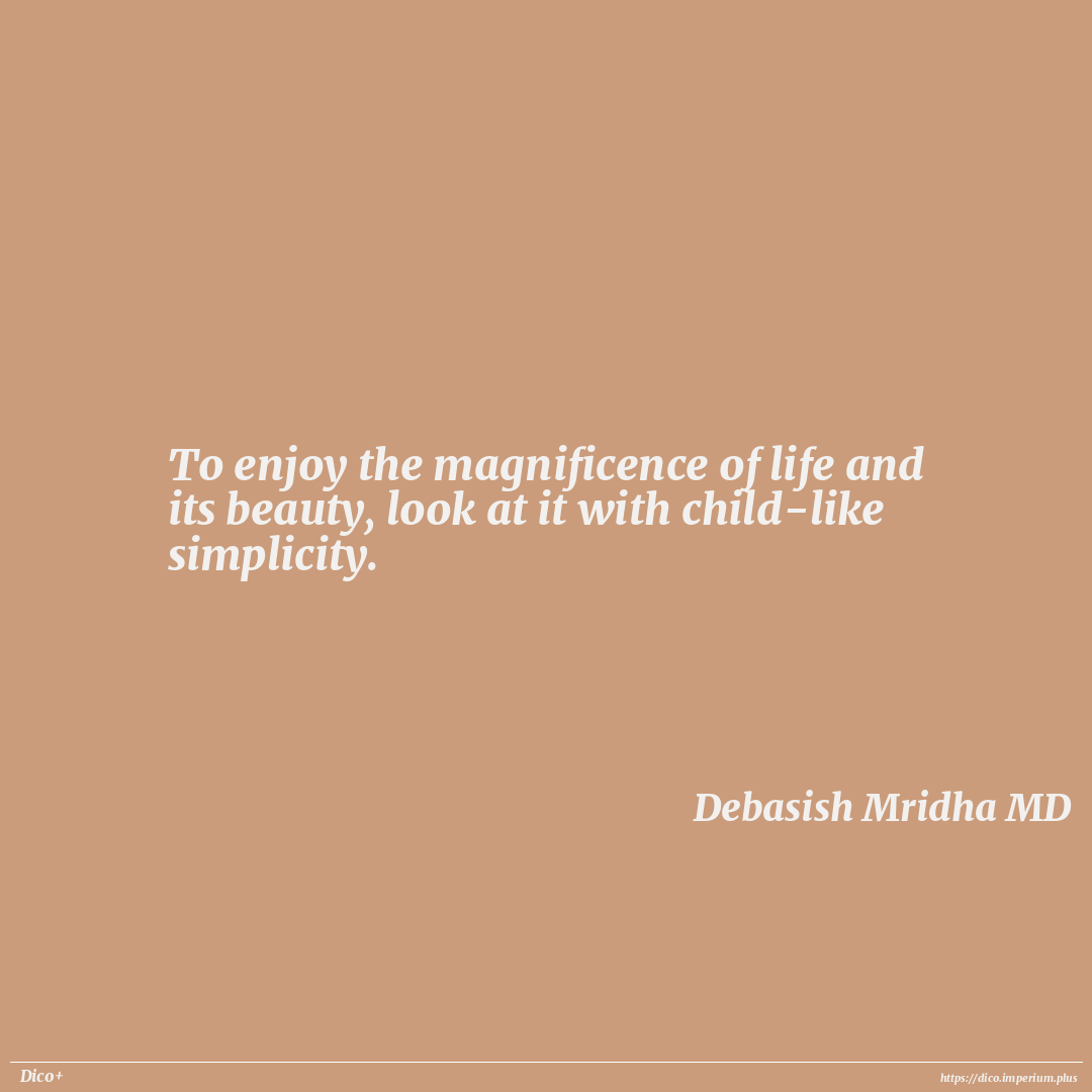 To enjoy the magnificence of life and its beauty, look at it with child-like simplicity.