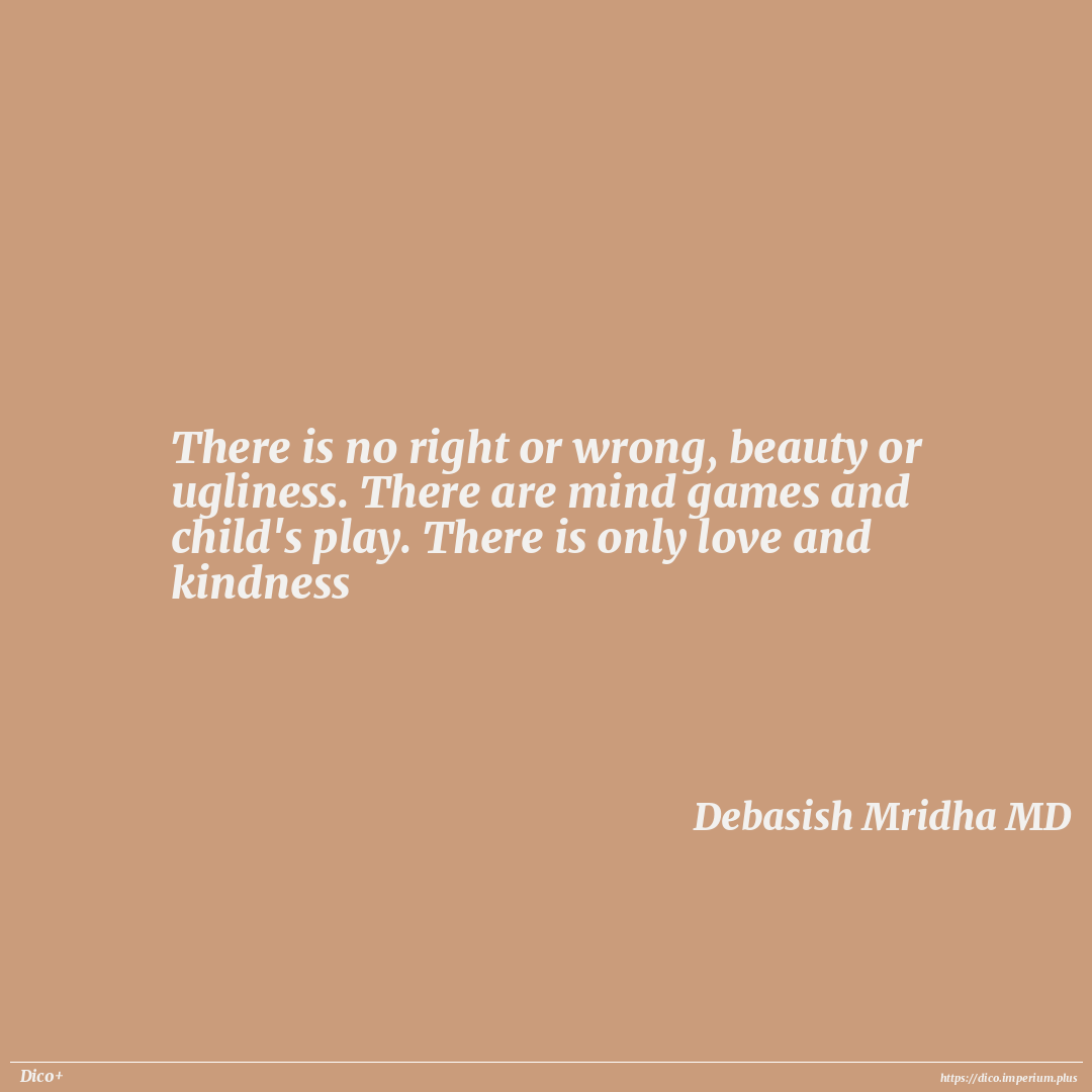 There is no right or wrong, beauty or ugliness. There are mind games and child's play. There is only love and kindness