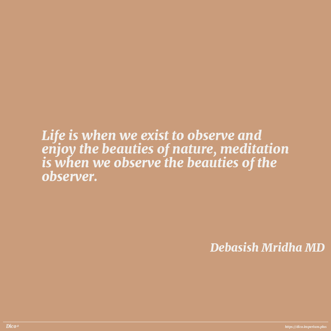 Life is when we exist to observe and enjoy the beauties of nature, meditation is when we observe the beauties of the observer.