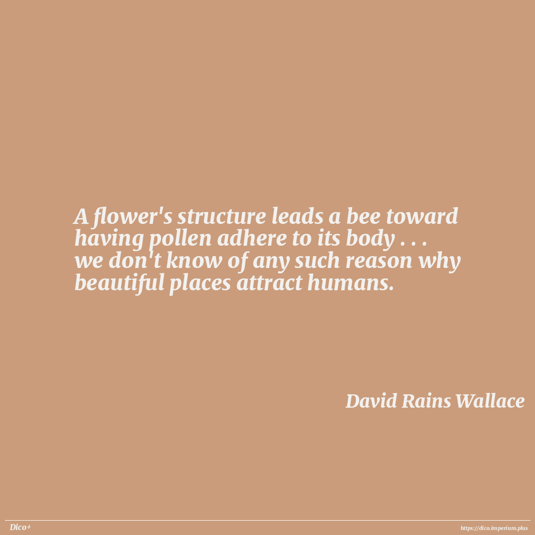 A flower's structure leads a bee toward having pollen adhere to its body . . . we don't know of any such reason why beautiful places attract humans.