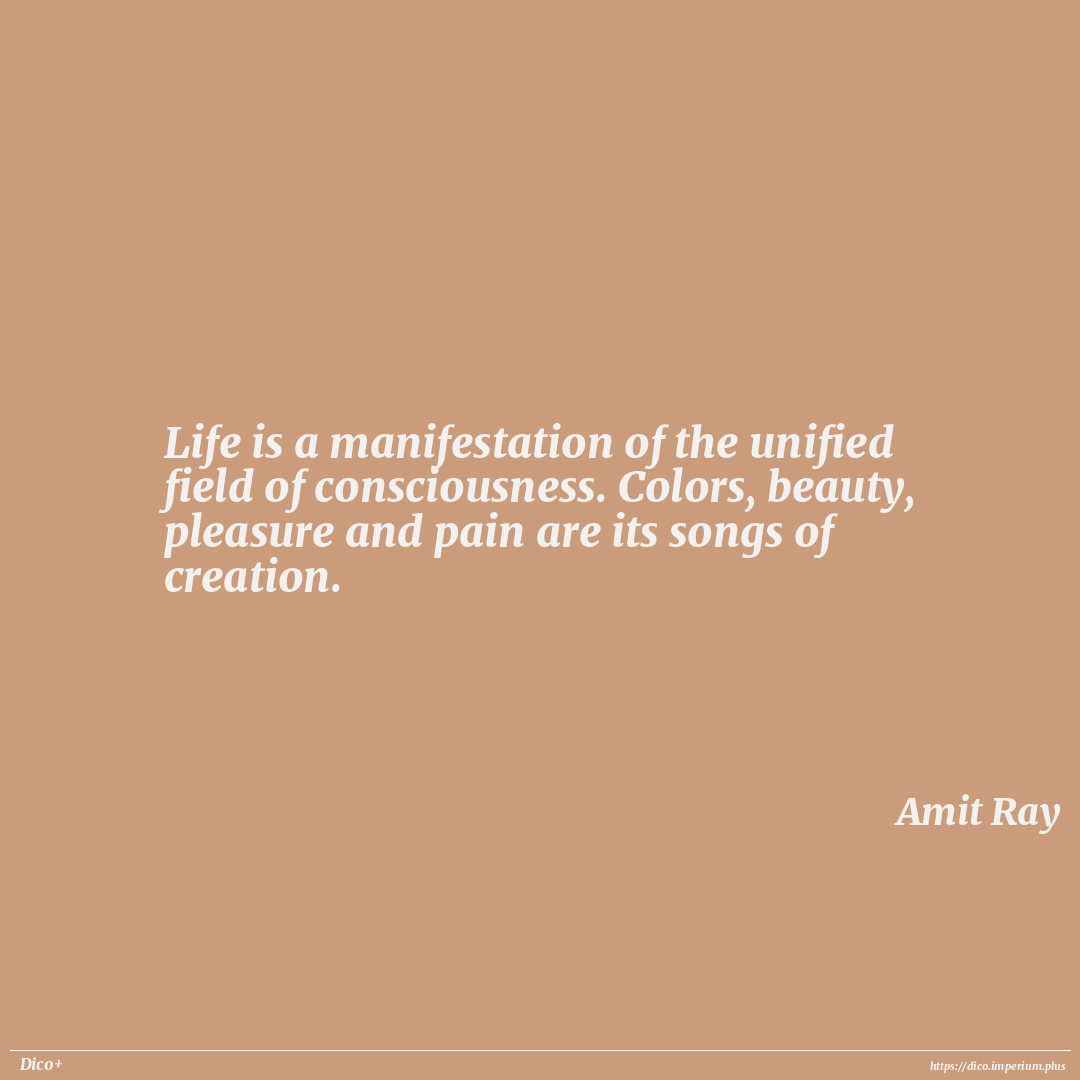 Life is a manifestation of the unified field of consciousness. Colors, beauty, pleasure and pain are its songs of creation.