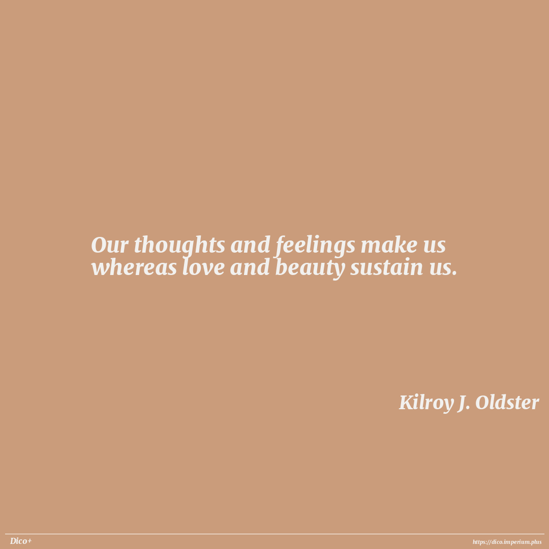 Our thoughts and feelings make us whereas love and beauty sustain us.