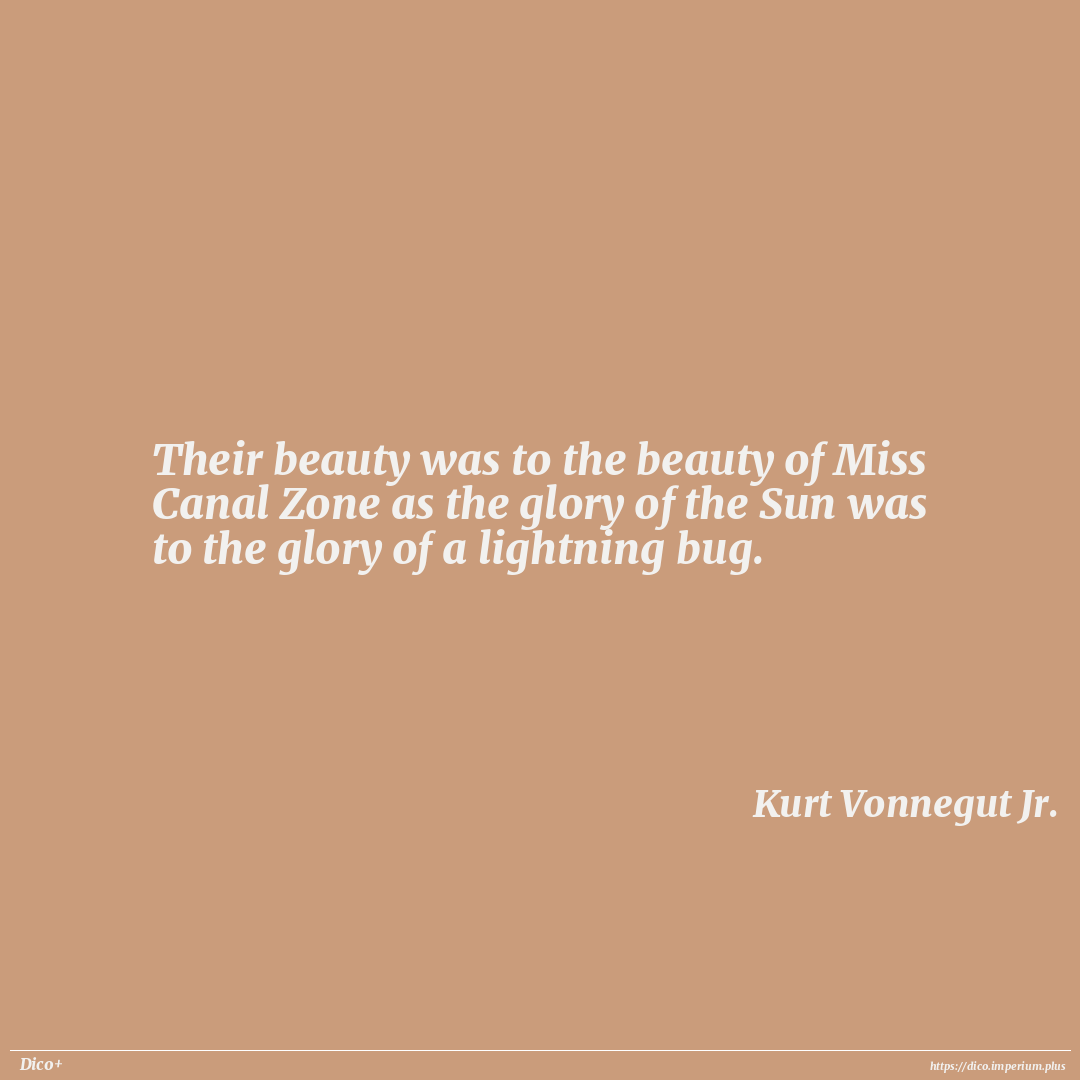 Their beauty was to the beauty of Miss Canal Zone as the glory of the Sun was to the glory of a lightning bug.