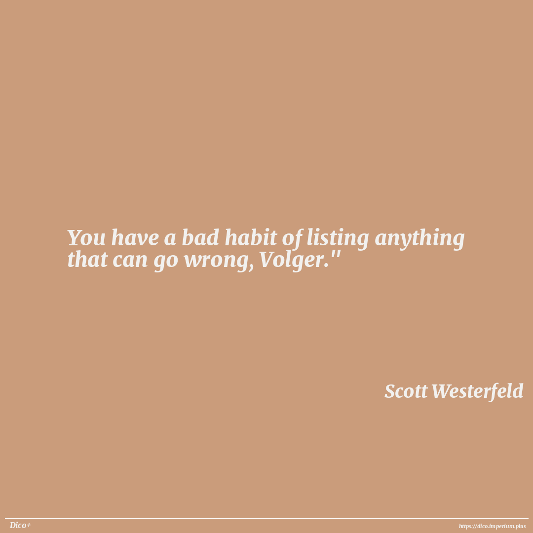 You have a bad habit of listing anything that can go wrong, Volger."