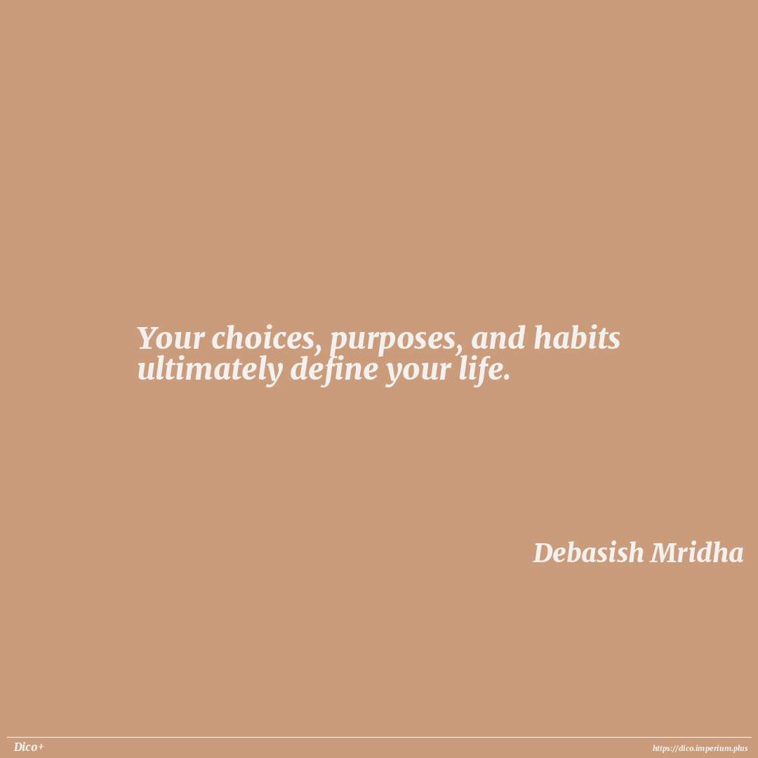Your choices, purposes, and habits ultimately define your life.