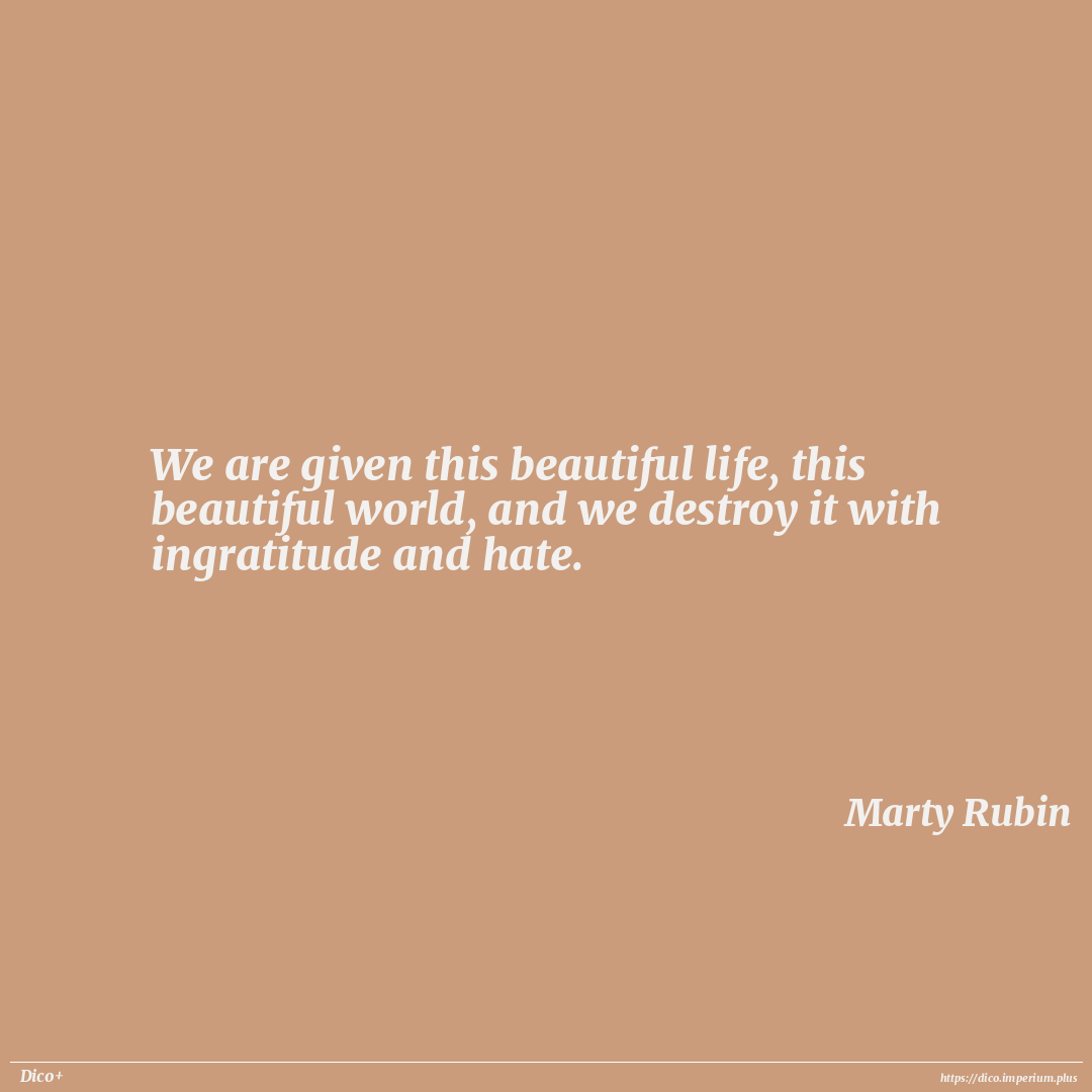 We are given this beautiful life, this beautiful world, and we destroy it with ingratitude and hate.