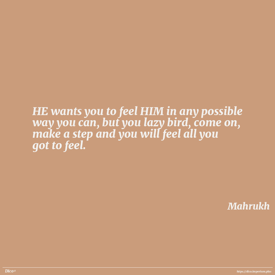 HE wants you to feel HIM in any possible way you can, but you lazy bird, come on, make a step and you will feel all you got to feel.