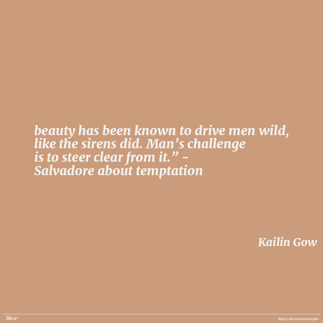 beauty has been known to drive men wild, like the sirens did. Man’s challenge is to steer clear from it.” - Salvadore about temptation