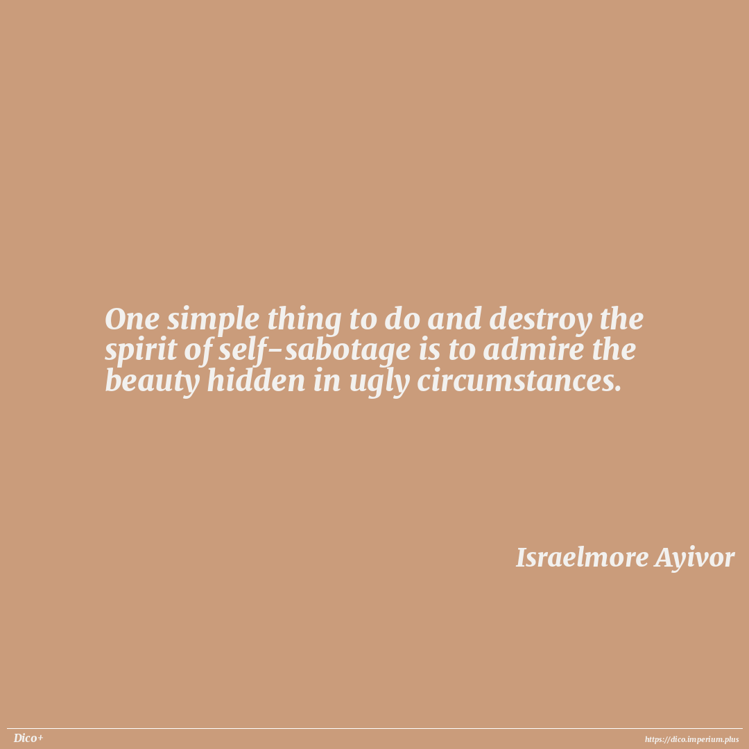 One simple thing to do and destroy the spirit of self-sabotage is to admire the beauty hidden in ugly circumstances.