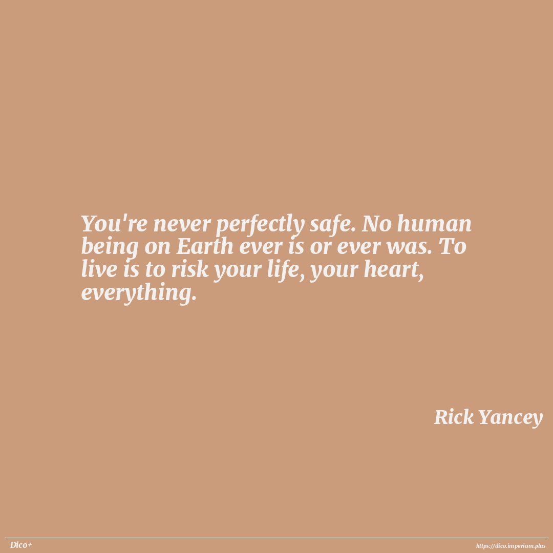 You're never perfectly safe. No human being on Earth ever is or ever was. To live is to risk your life, your heart, everything.