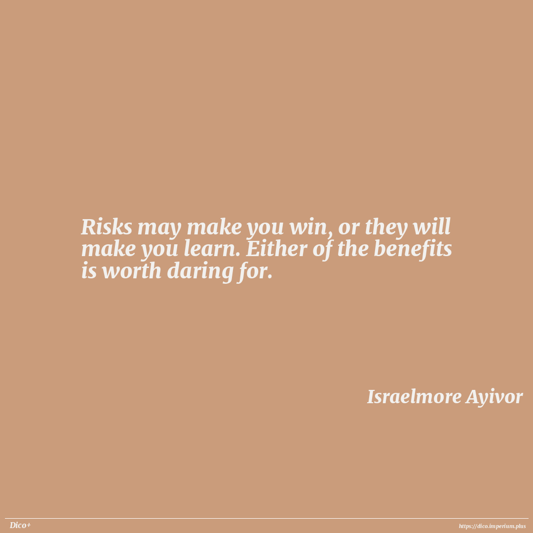 Risks may make you win, or they will make you learn. Either of the benefits is worth daring for.