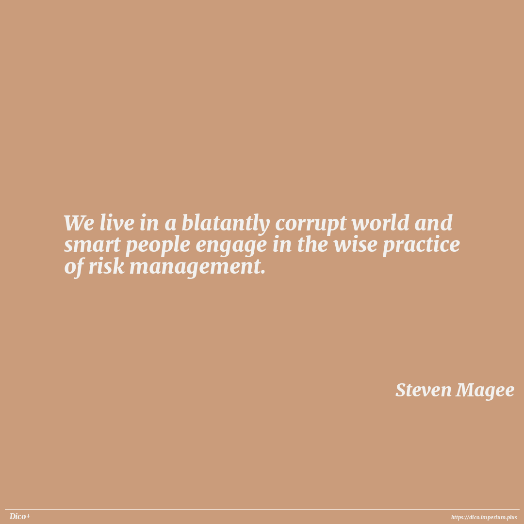We live in a blatantly corrupt world and smart people engage in the wise practice of risk management.