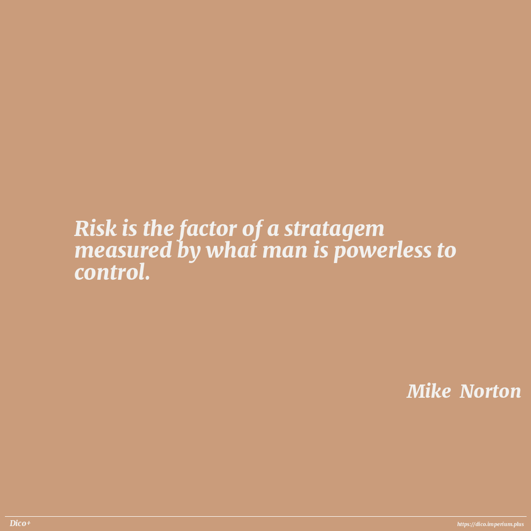 Risk is the factor of a stratagem measured by what man is powerless to control.