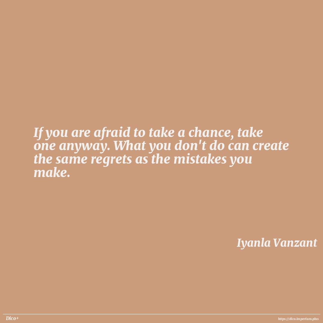 If you are afraid to take a chance, take one anyway. What you don't do can create the same regrets as the mistakes you make.