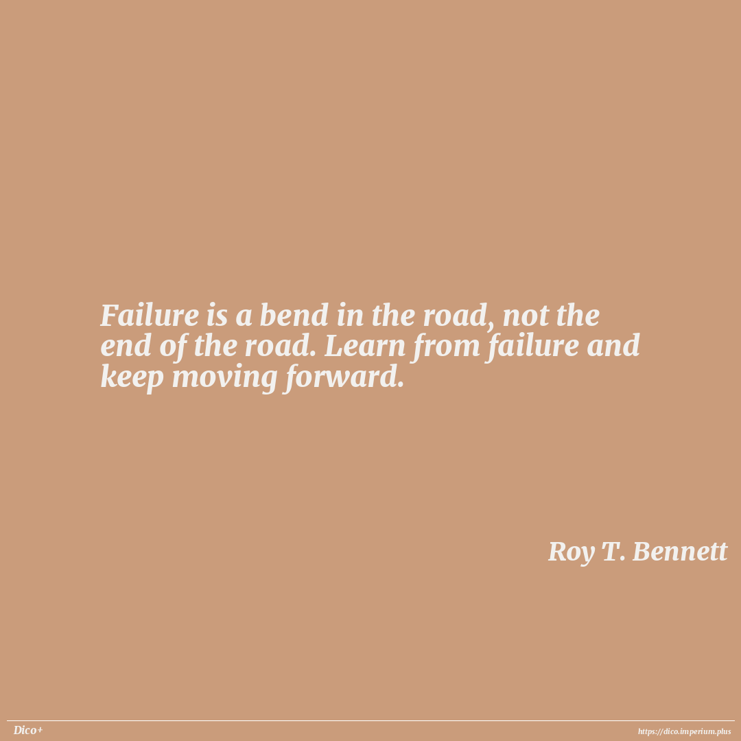 Failure is a bend in the road, not the end of the road. Learn from failure and keep moving forward.