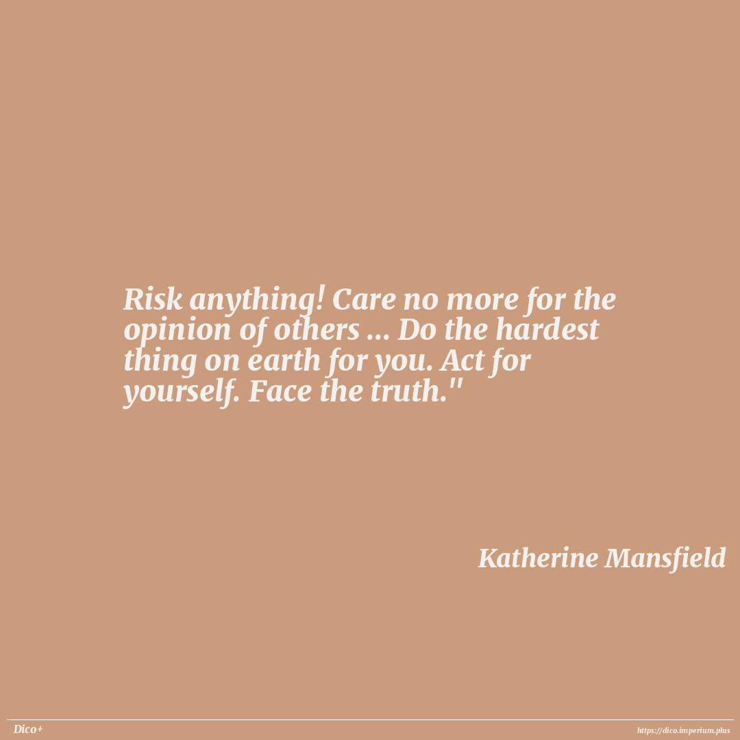 Risk anything! Care no more for the opinion of others ... Do the hardest thing on earth for you. Act for yourself. Face the truth."