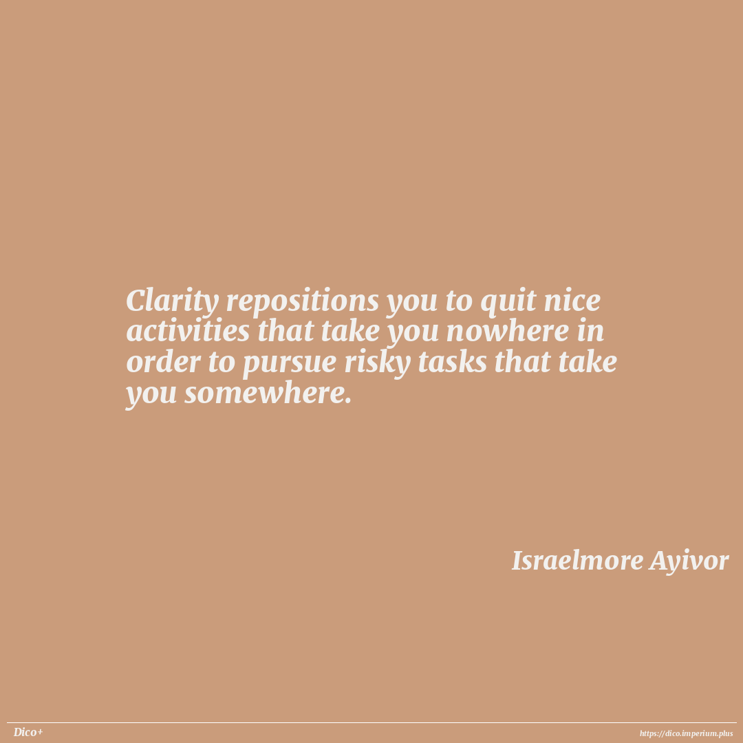Clarity repositions you to quit nice activities that take you nowhere in order to pursue risky tasks that take you somewhere.