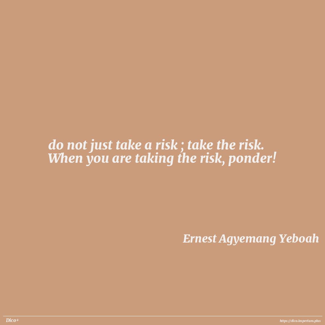 do not just take a risk ; take the risk. When you are taking the risk, ponder!
