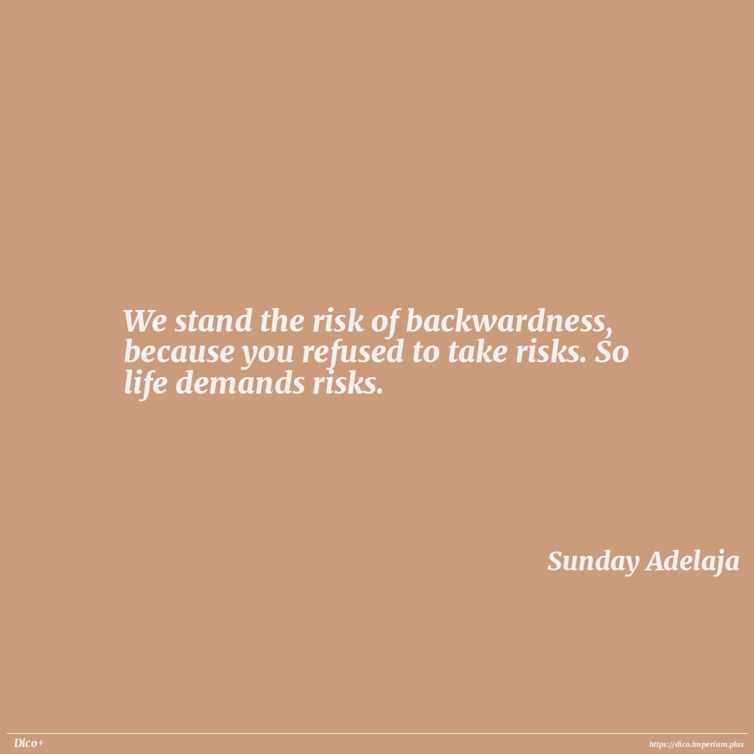 We stand the risk of backwardness, because you refused to take risks. So life demands risks.