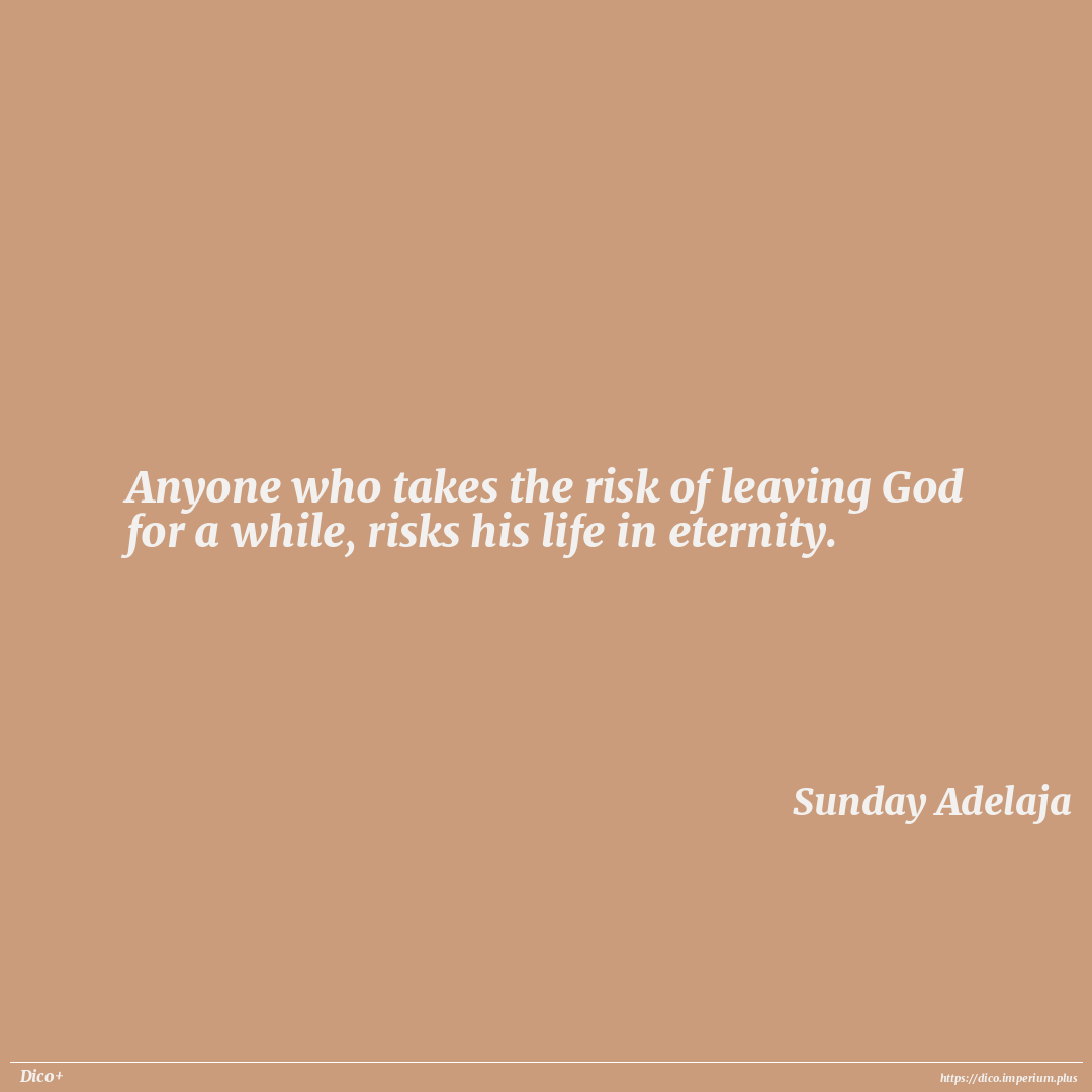 Anyone who takes the risk of leaving God for a while, risks his life in eternity.