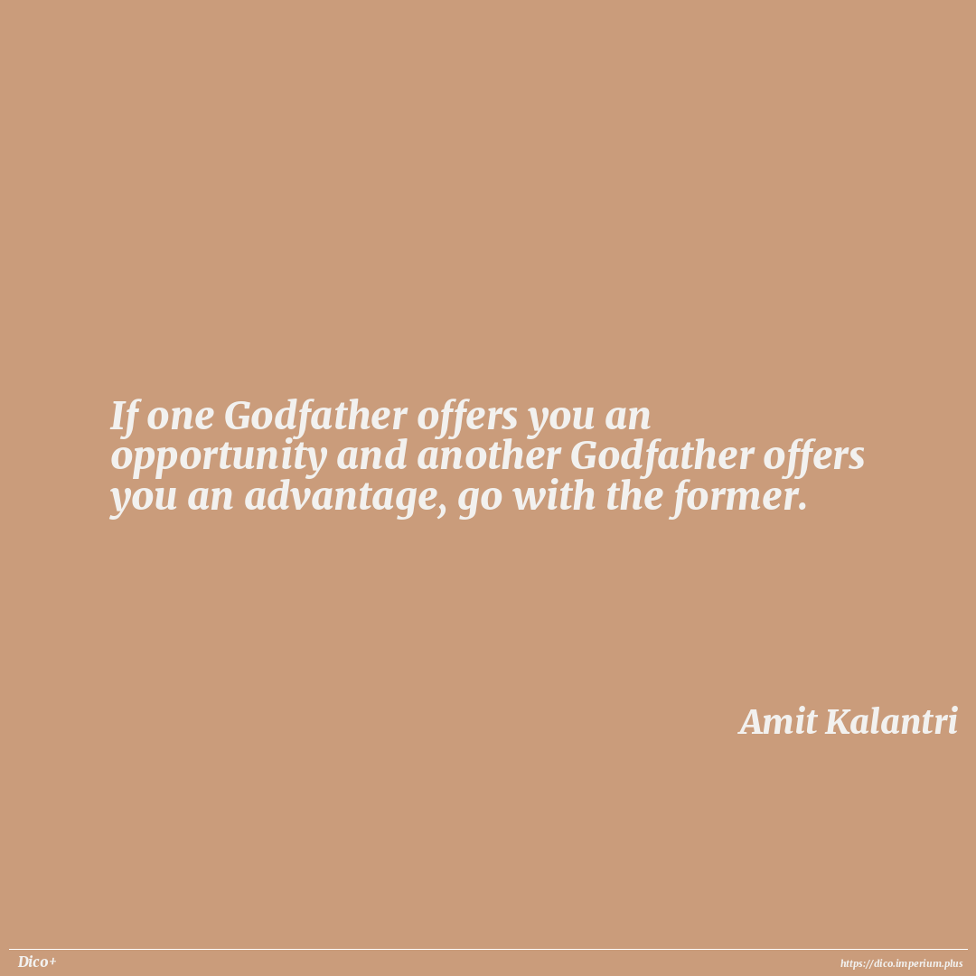 If one Godfather offers you an opportunity and another Godfather offers you an advantage, go with the former.