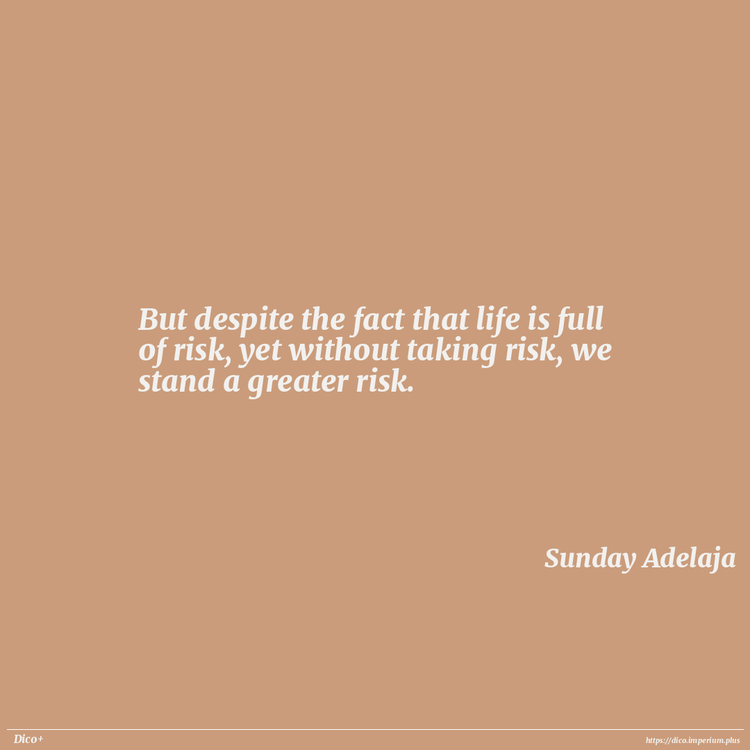 But despite the fact that life is full of risk, yet without taking risk, we stand a greater risk.