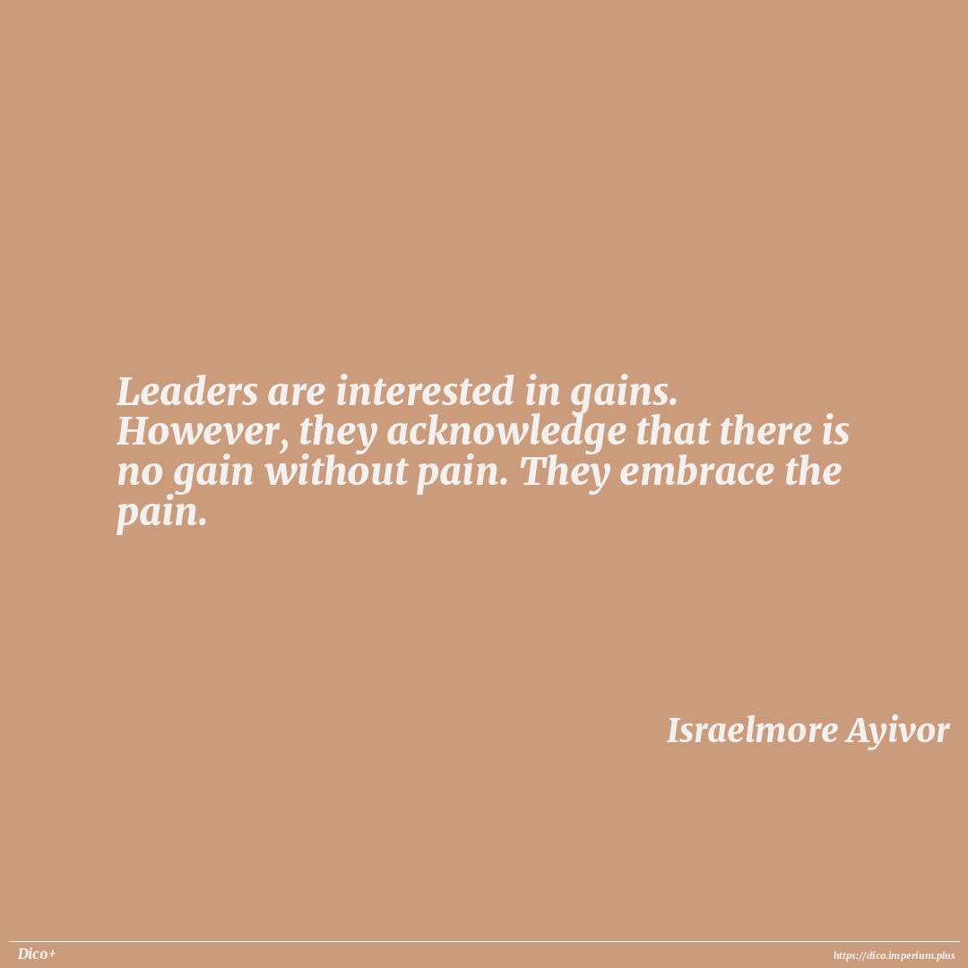 Leaders are interested in gains. However, they acknowledge that there is no gain without pain. They embrace the pain.