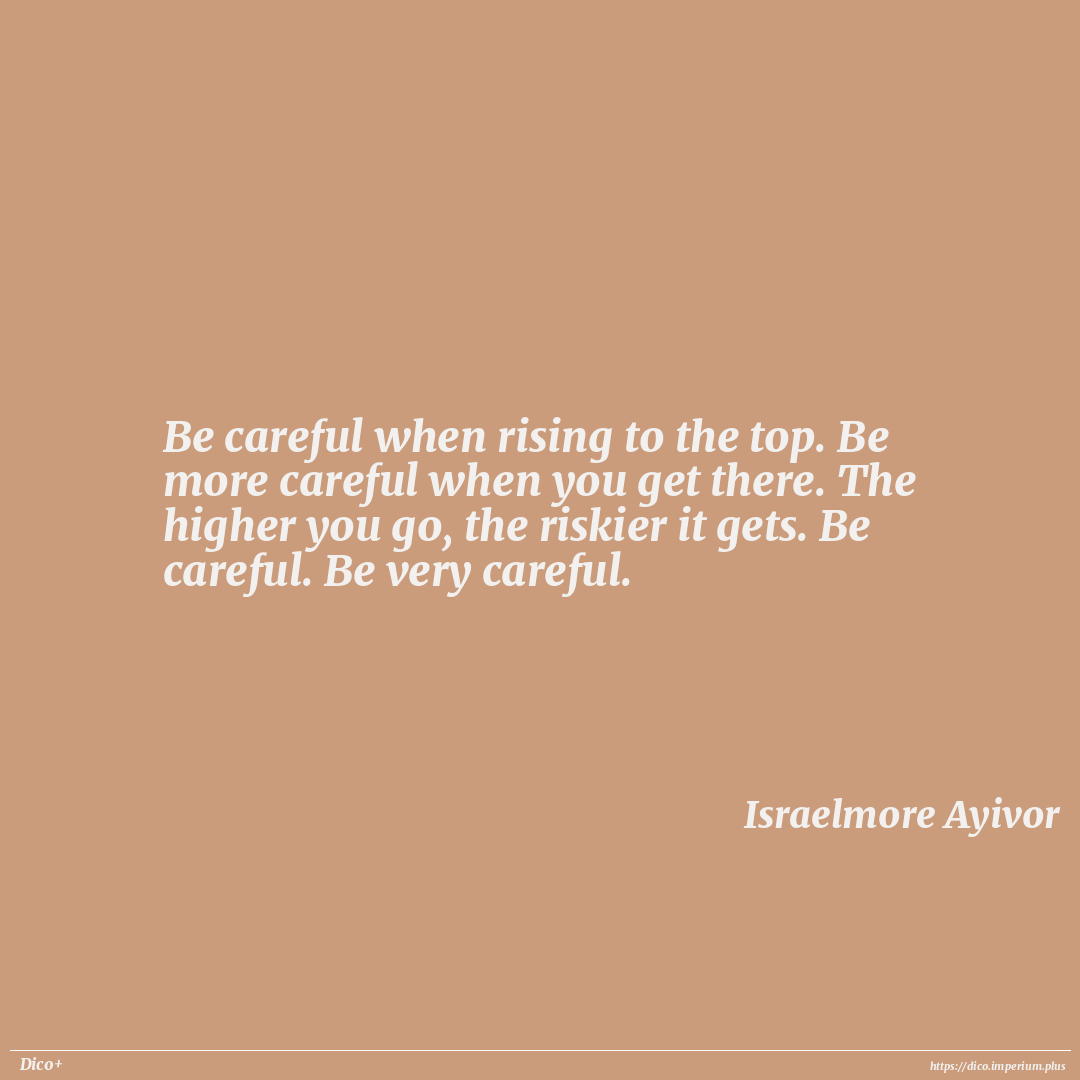 Be careful when rising to the top. Be more careful when you get there. The higher you go, the riskier it gets. Be careful. Be very careful.