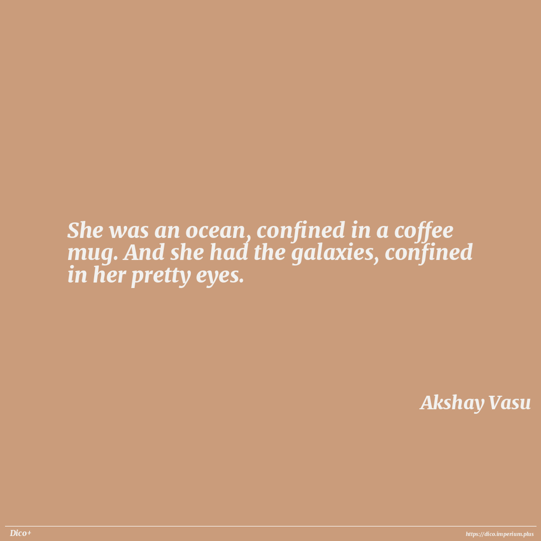 She was an ocean, confined in a coffee mug. And she had the galaxies, confined in her pretty eyes.