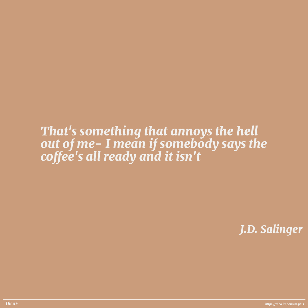 That's something that annoys the hell out of me- I mean if somebody says the coffee's all ready and it isn't