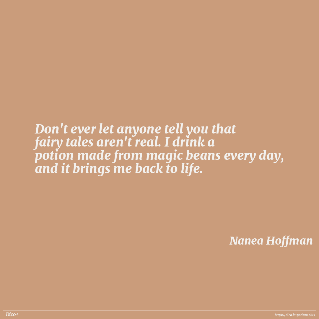 Don't ever let anyone tell you that fairy tales aren't real. I drink a potion made from magic beans every day, and it brings me back to life.