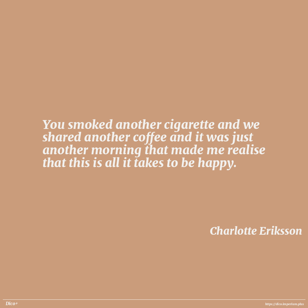 You smoked another cigarette and we shared another coffee and it was just another morning that made me realise that this is all it takes to be happy.