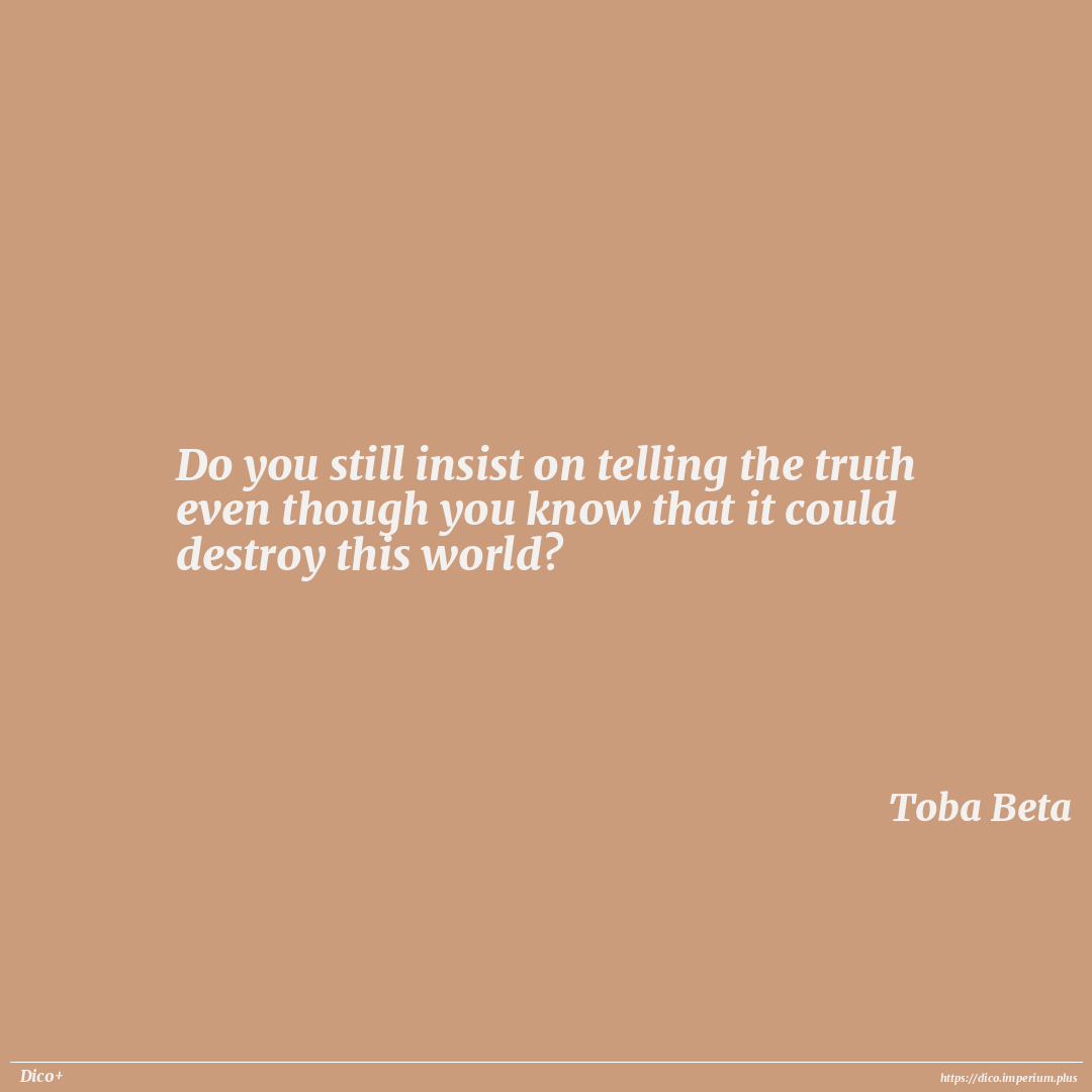 Do you still insist on telling the truth even though you know that it could destroy this world?