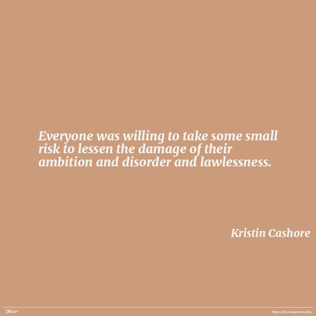 Everyone was willing to take some small risk to lessen the damage of their ambition and disorder and lawlessness.