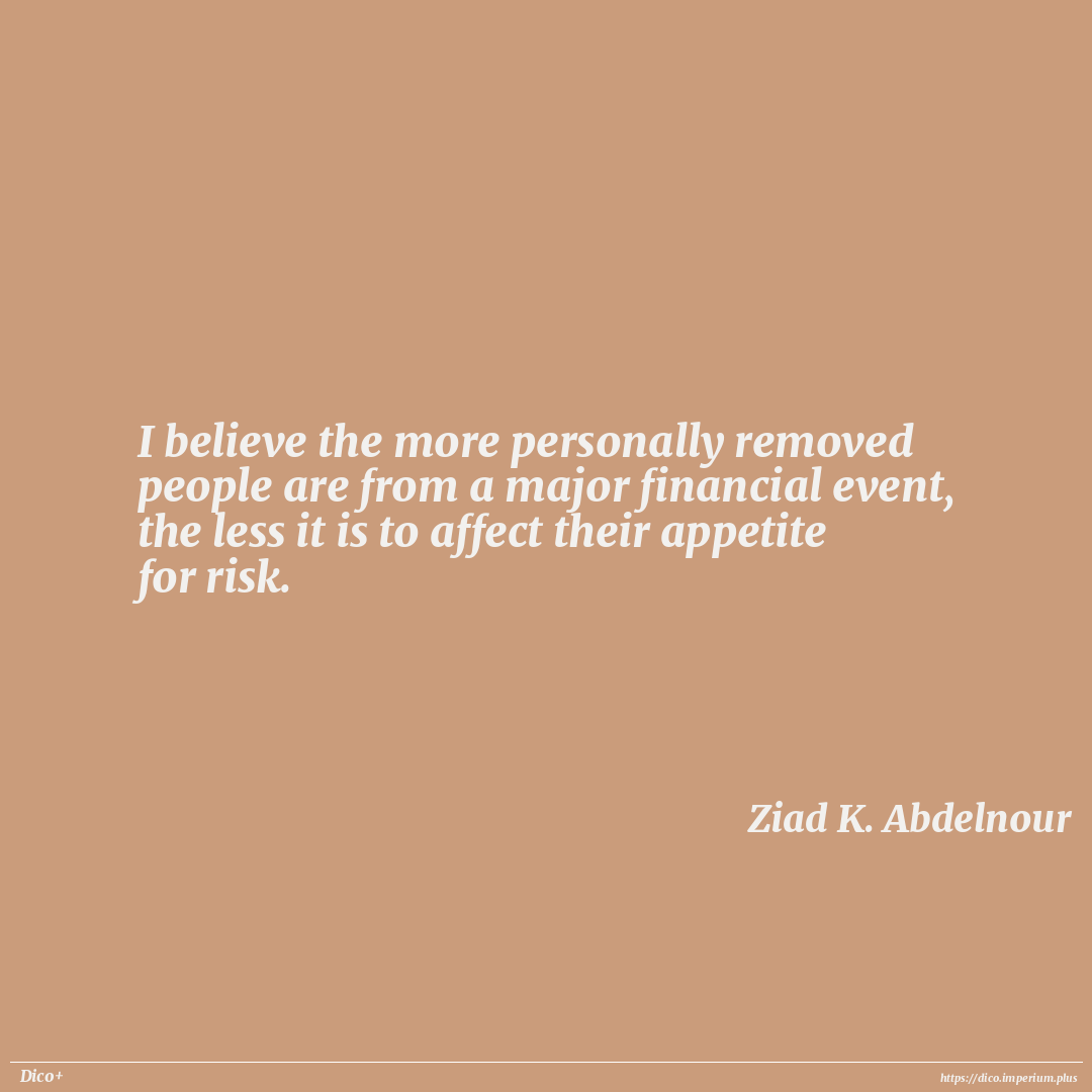 I believe the more personally removed people are from a major financial event, the less it is to affect their appetite for risk.