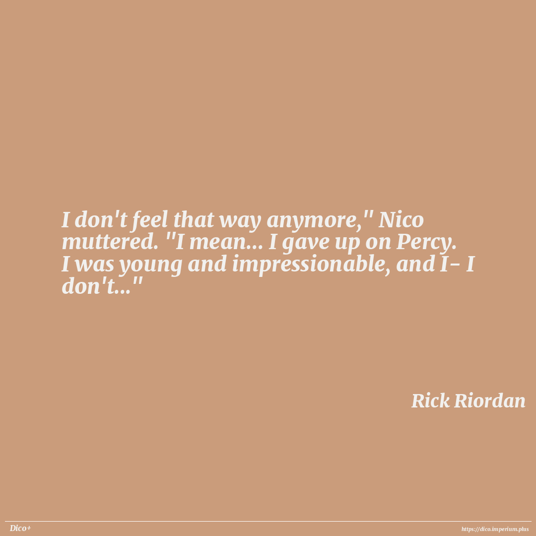I don't feel that way anymore," Nico muttered. "I mean... I gave up on Percy. I was young and impressionable, and I- I don't..."