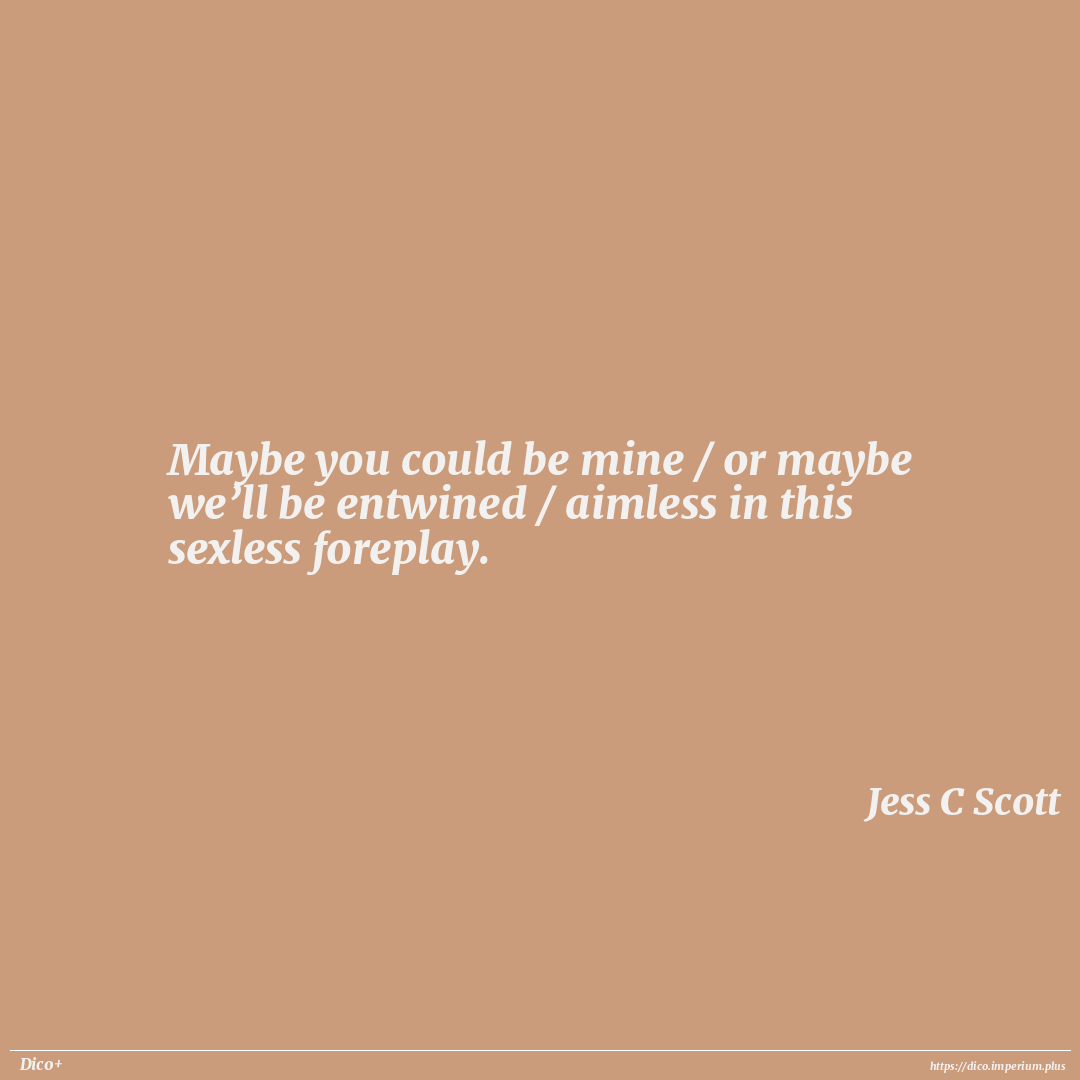 Maybe you could be mine / or maybe we’ll be entwined / aimless in this sexless foreplay.